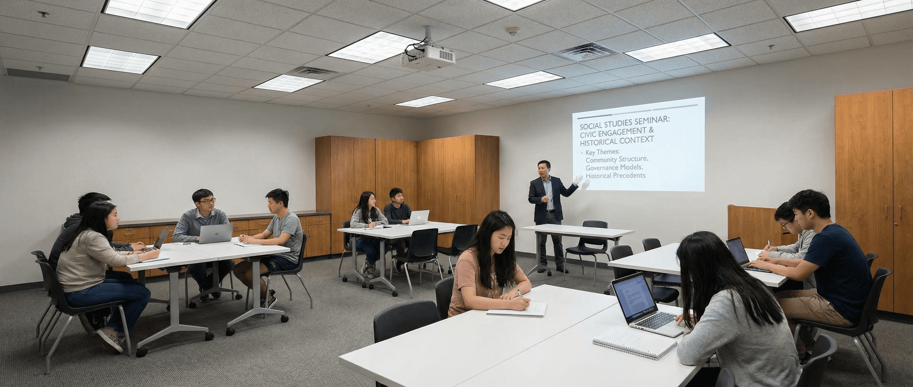 우리 사회과학 프로그램은 학생들이 역사, 지리, 시민학, 문화 및 사회 시스템을 탐구함으로써 주변 세상을 이해할 수 있도록 돕습니다. 학생들은 사회가 어떻게 발전하는지, 정부가 어떻게 기능하는지, 그리고 세계적 사건이 현대 생활에 어떤 영향을 미치는지를 조사합니다. 토론 기반 학습, 지도 연구, 1차 자료 분석 및 구조화된 프로젝트를 통해 학습자들은 해석 능력과 역사적 인식을 쌓습니다. 과거 사건을 현재 문제와 연결하여 학생들이 세계적 관점을 비판적이고 감성적으로 생각하도록 장려합니다. 이 프로그램은 또한 고급 인문학 과정을 위한 핵심 역량인 학술 글쓰기, 연구 능력 및 의사소통을 지원합니다.
